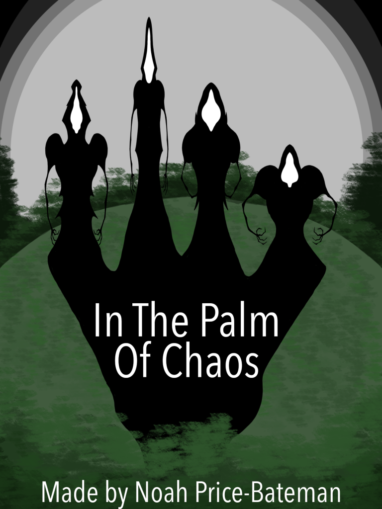 When making three cover designs, I wanted to make 3 book covers as they would fit the theme of me making a website that sells horror related things, specifically books. The first design is based on the fear of mystery, giving it a different feeling from the rest of the cover designs. I wanted to do this as I thought mystery, especially in the field of horror, is a huge attention grabber. Along with this, I wanted to try a bit of conceptual design, by making the figures in the poster represent the fingers of a hand, which their shadows form. This then works with the title ‘In the Palm of Chaos’ being in the literal palm of the hand.