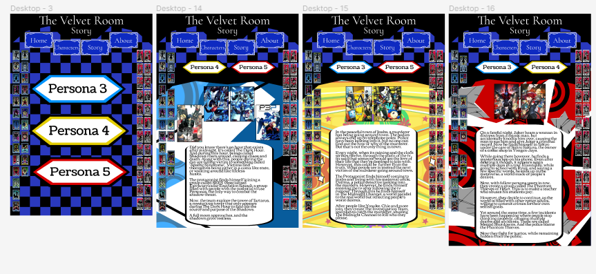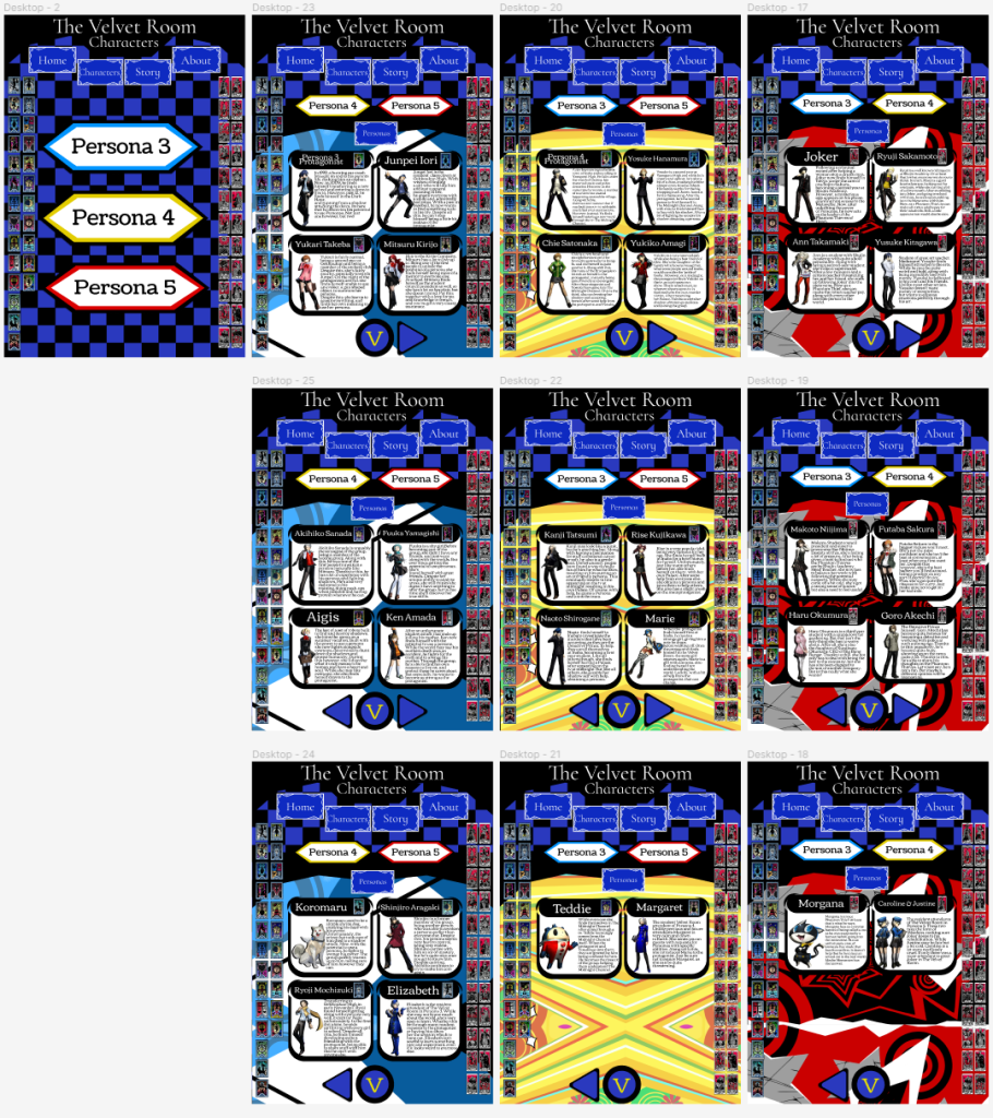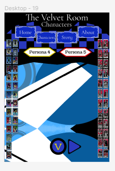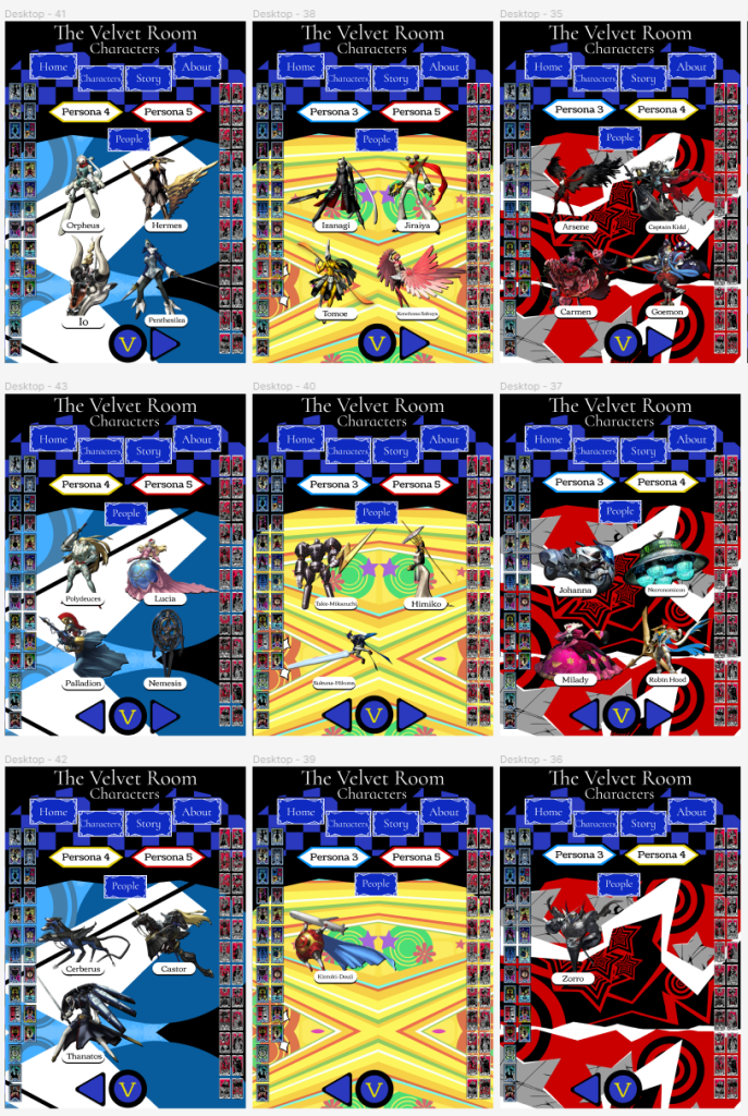 A finished look at the character menus. Persona 3 has more characters thanks to the game having more important story centred characters. The format suits the website layout design more, while remaining similar to the mobile app. All information is the same, as it wouldn’t feel right to lock information behind either the website or the app. The inclusion of the Personas was something I wanted to include on the website and not the mobile app to give something original and unique to the website that doesn’t include any more information, and is just a cool added feature.