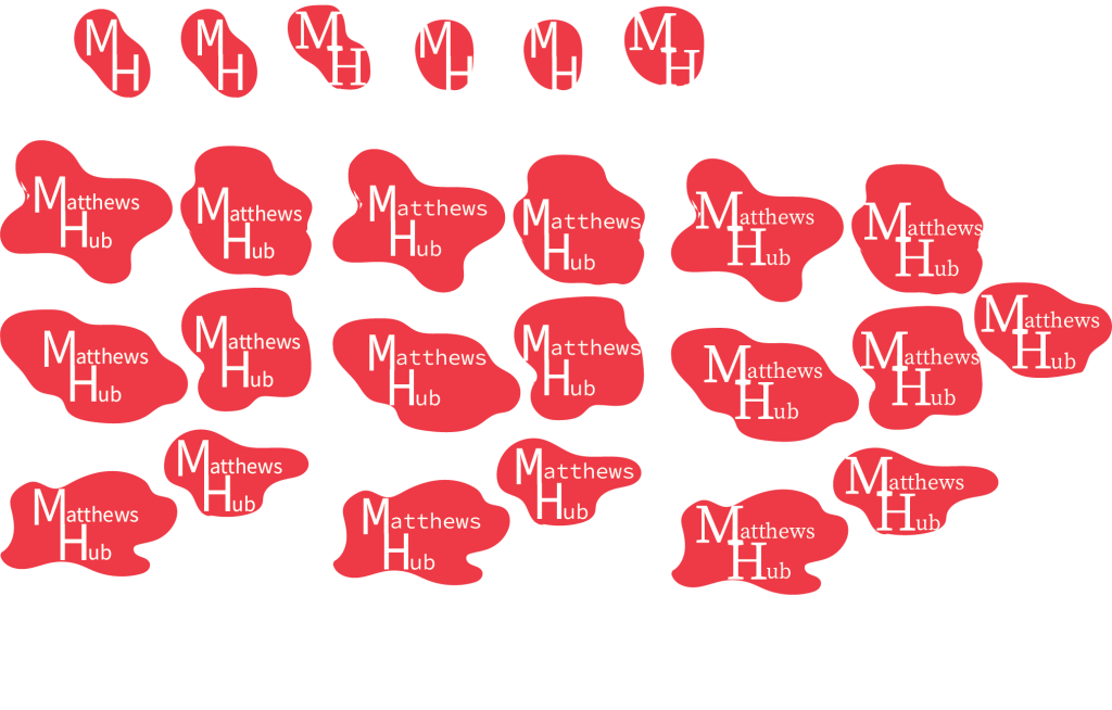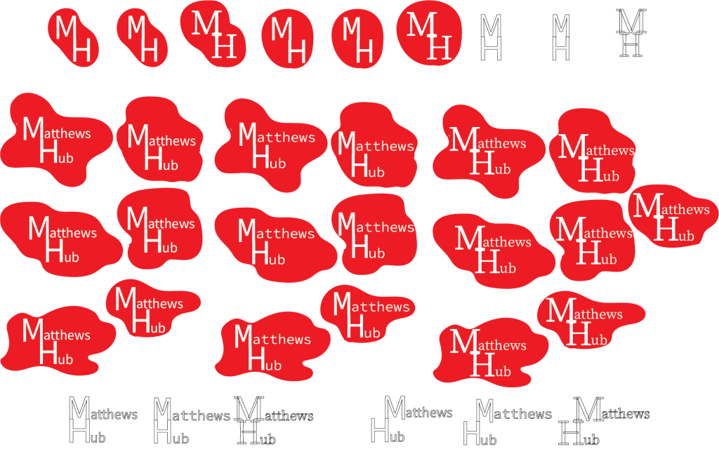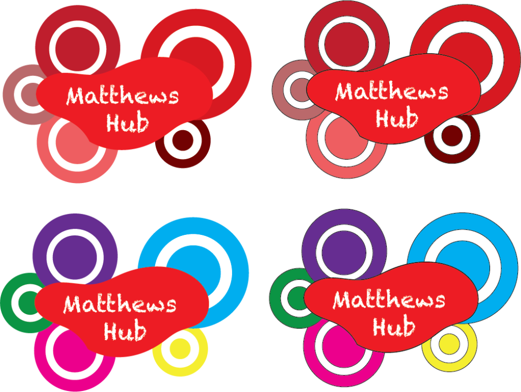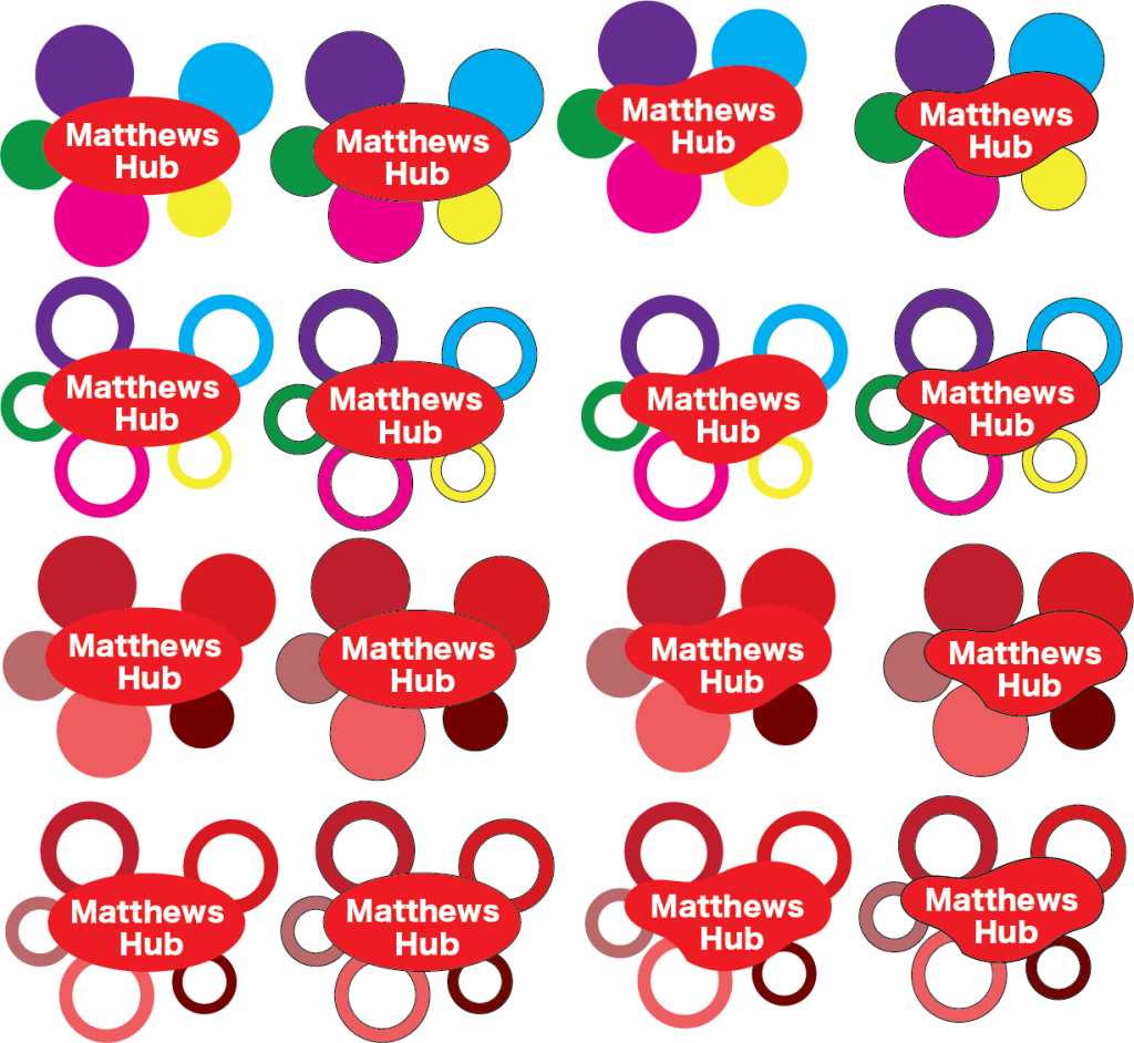 Once satisfied, I decided to take a step back to the current Matthews Hub logo and change things that already exist in the design, rather than jumping into the unknown first thing. This began with simply making the simple circle into an oval which is more moulded around the words in a sense. Once having done that, I decided to try putting circles around it like one of the interactable elements of their website, with the idea of it looking like a very simplified flower. This choice was made because flowers are a commonly used sign of peace.