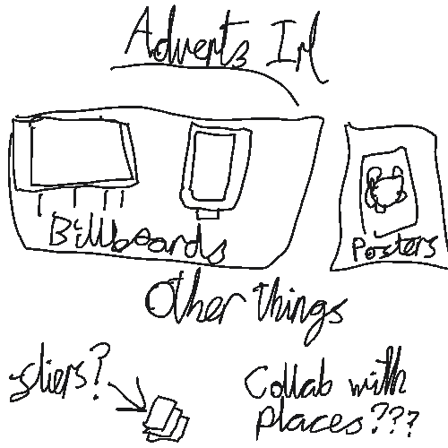 Of course, these would be the top of real life advertising and easily the most expensive. When coming up with more affordable advertising, the most obvious idea was posters. These would have a similar look and style to the board designs, but a lot smaller. Past this point, the last thing I could think of was fliers as they provide a quick and easy way to get your advertising out there. However, after past experience with fliers, I believe they are not as effective as posters. For very flier handed out, there is a chance that someone would either not accept them at all, or will bin them not long after. Therefore, I believe posters would be the better way to go compared to fliers.