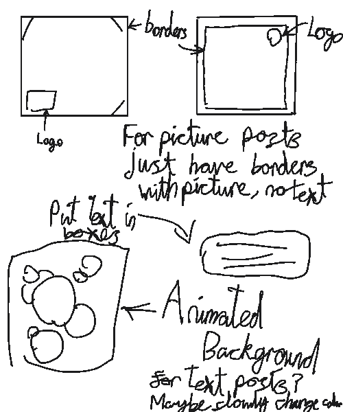 I started with coming up with a few base concepts for what to include in online posts which would connect them together. Obviously, one of these things could be borders, as they are something simple that, if small enough, shouldn’t get in the way of the actual content. This is determined entirely by execution and what the content actually is. However, this shows a base branding and not much beyond that. The next idea was to reuse the circle background used on my site. On some platforms, these could be animated and even switch hue, or perhaps be all the circle colours on one background. If executed well, this could give an easy way of simple branding. But, this all depends on execution, as simply imaging it does not give a full idea. These animated backgrounds would be most likely only on text posts, as if put with videos, they would be incredibly distracting.