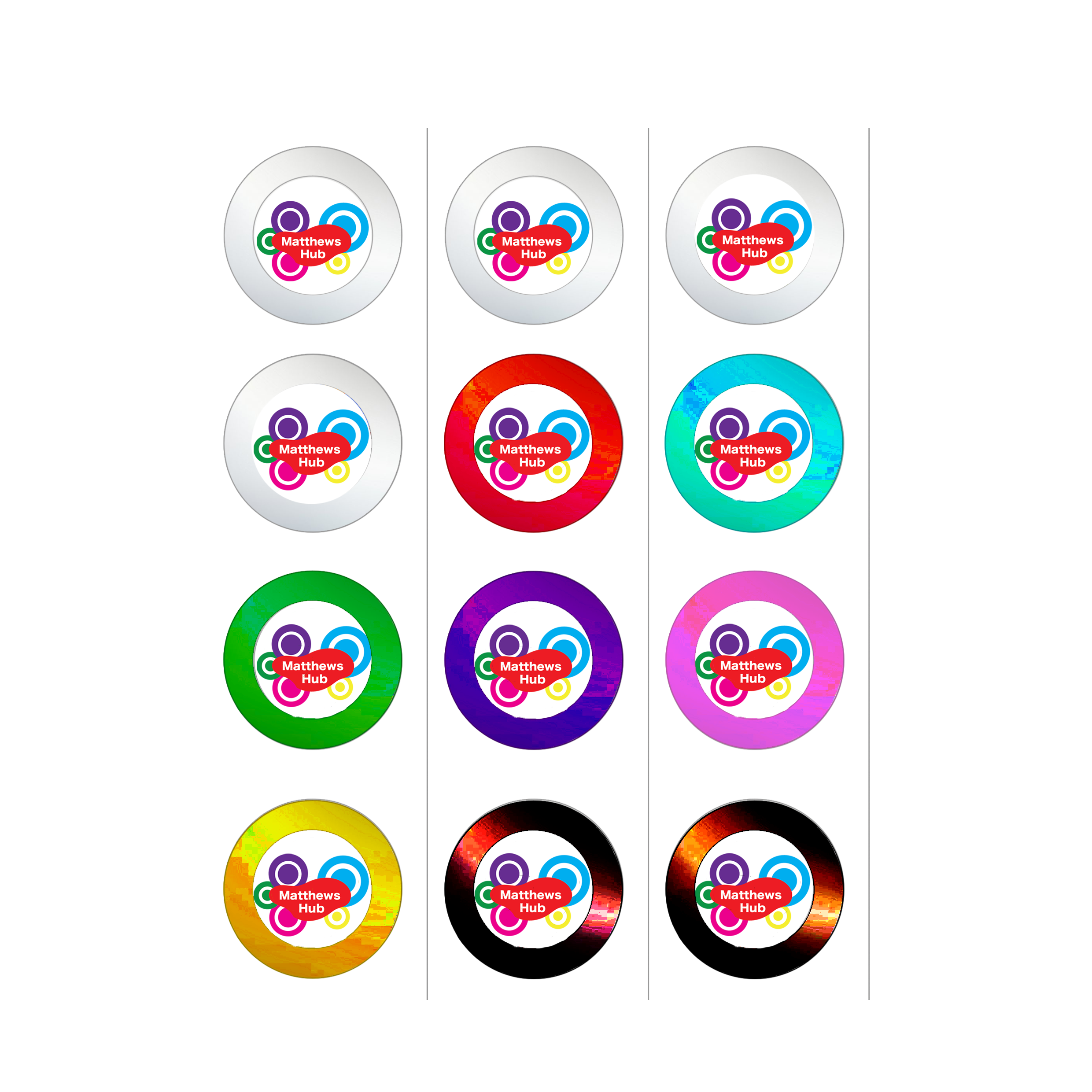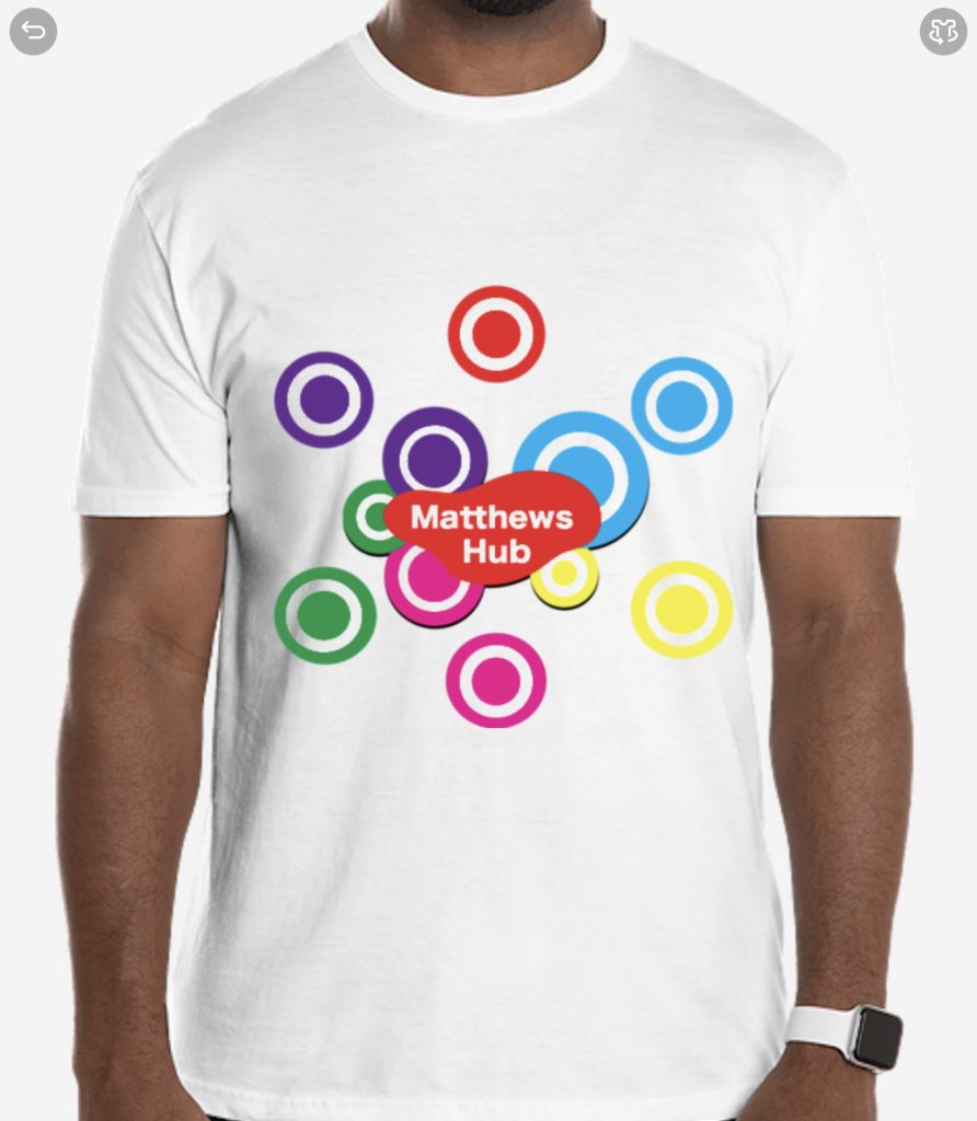 Next was Button designs. These were fairly simple to make concepts for. Simply the Matthews Hub logo in the middle would do the job. Of course, to make them unique, I made it so there are a bunch of coloured options. this would help as everyone would have a choice when picking and people would be more drawn to a certain colour, giving them more reason to take a badge in the first place. I then also added two different black options as there are a few people on the autistic spectrum who prefer designs like that. Plus, it adds another colour option for people to choose between.