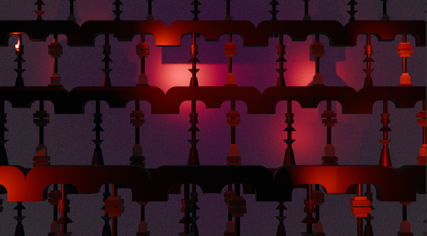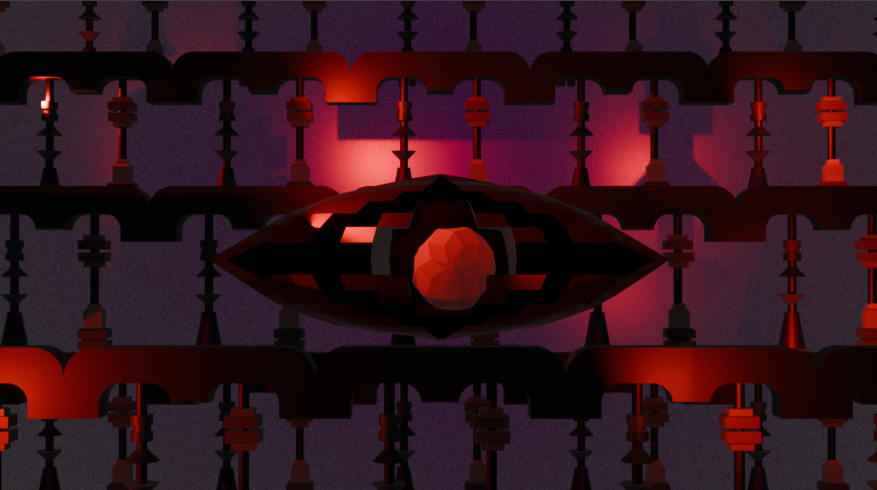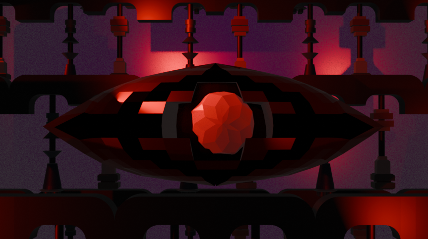 Afterwards was Narratives of Space and Time. As mentioned in the previous post, the camera itself does not move as much as other animations, simply being a pan outwards and back inwards at the end. However, the panning itself slowly reveals more pistons, eventually showing a full picture of how truly overshadowing the main eye is, which would be the narrative. The pistons themselves move to a perfect rhythm, while the eye itself slowly moves its eye, also showing a second narrative of perfection.