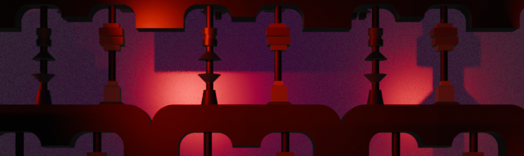 Next was Small Multiples Encourage Comparison. I stayed true to my storyboard idea in which all the pistons are in the background, with more showing up over time. Along with this, every other piston is a different one, not only in looks but also in when they move. While this would be hard to notice on first watch, I believe that adds something rewatchable to the animation.