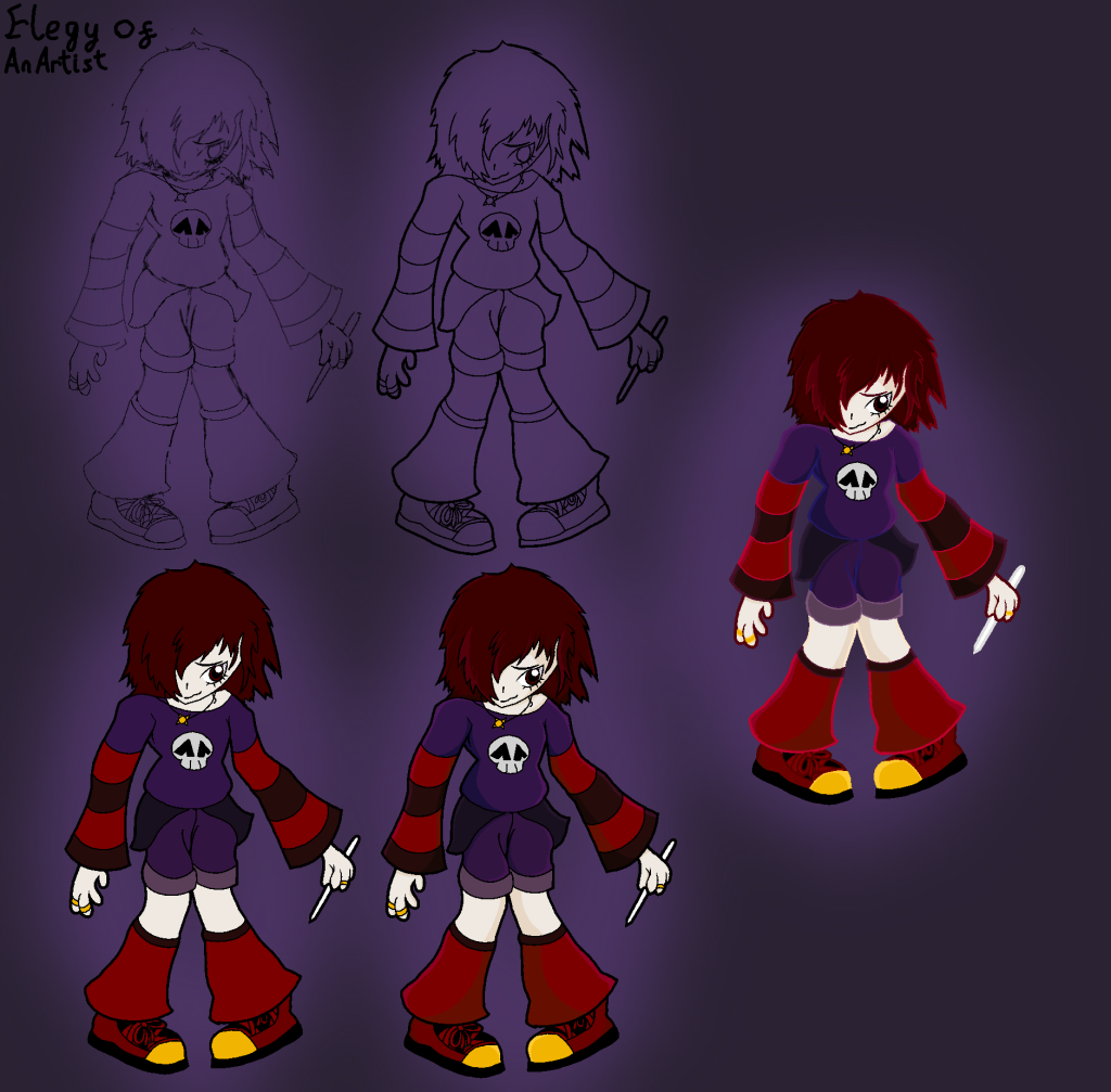 Digitally drawing the character was straight to the point. I left in each phase of the character design to show the process of making it. The design still heavily leans on the scene art style with a few changes. Most of the character won’t be shown but I felt it necessary to add to make animating the body easier to imagine.