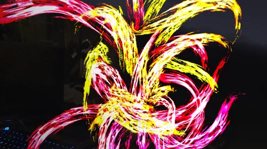 Upon using the 3D space to its full advantage, along with other brushes such as the fire, rainbow, neon, etc, I found that Open Brush could make beautiful effects and pillars of art. This was with an ease that Blender or Zbrush lacked in areas. Because of this, the lines drawn flow more freely around each other and have a very whimsical quality to them.